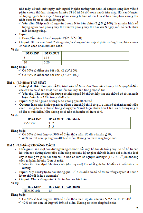 | 5 | D395 Khoảng cách | 4 |