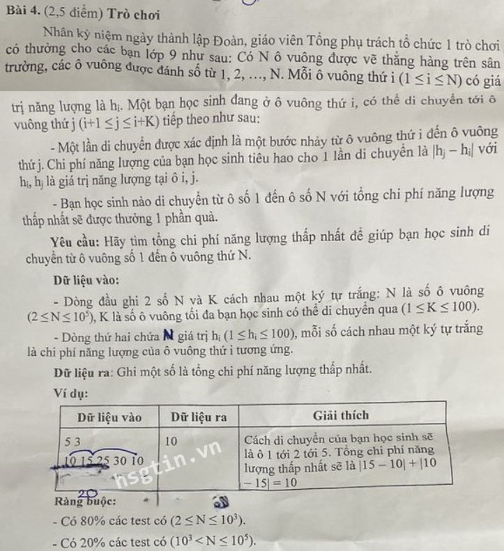 - Có 20% số điểm ứng với ~n = 10~ và dãy ban đầu là một dãy không giảm;
