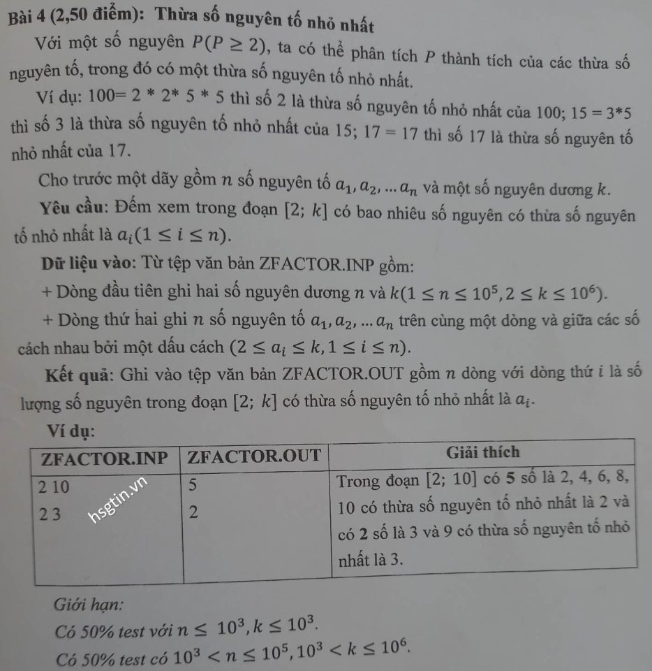 THỪA SỐ NGUYÊN TỐ NHỎ NHẤT